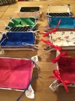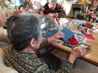 小物入れを作りましょう♫ 11月19日 今週は みなさんと小物入れを作っています。 牛乳パックを使ってお好きな布地を貼り仕上げます。 布地にチャコペンでしるしをつけて切る作業、それを牛乳パックに貼って乾かしてリボンをつけて、、、と何工程もあるのでお帰りギリギリまで、みなさん集中してがんばっていらっしゃいました☆ できあがり〜〜٩( ᐛ )( ᐖ )۶