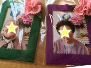 笑顔の写真 コメントを残す こんにちは! 今週の日曜日は母の日という事で 今週のレクは フェルトを使ってフォトフレームとカーネーションを作っています。 そして、 みなさんのステキな笑顔の写真をパチリ! 完成したフォトフレームに入れて 持って帰っていただいています。 写真を撮るのを恥ずかしがる方もいましたが、 写真を撮っているうちに ステキな笑顔に♪ 男性は 先日外出レクの時に 興奮して見ていた豪華客船との写真。 飾りはカーネーションではなく、 漁師をされていたので魚とワカメを♪ 今日も笑顔がいっぱいの デイサロン乃木でした!